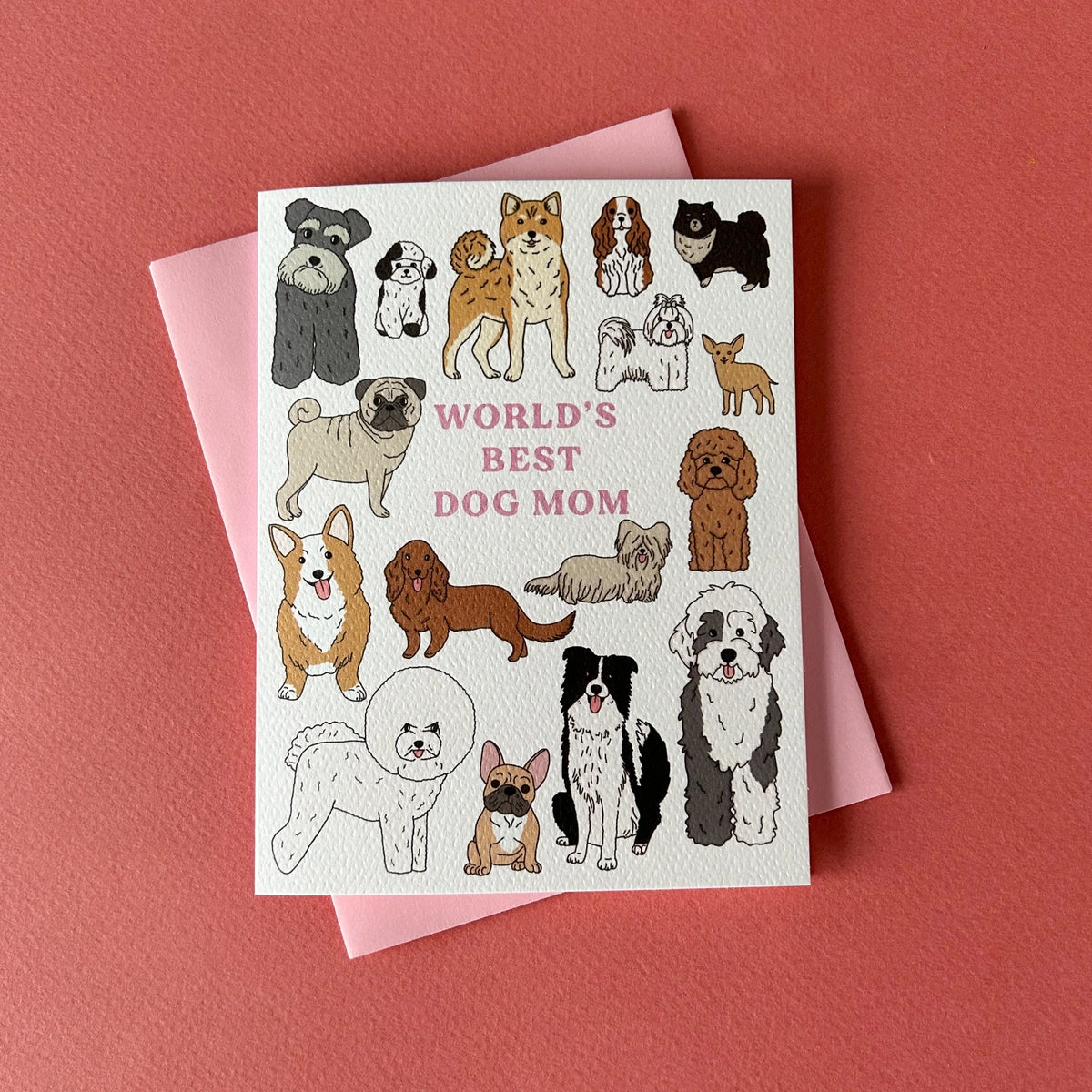 This card is for the dog mom who goes above and beyond for her furry friend. Happy Mother's Day to the best dog mom ever, who truly deserves all the belly rubs and treats in the world! The card comes with a pink envelope.