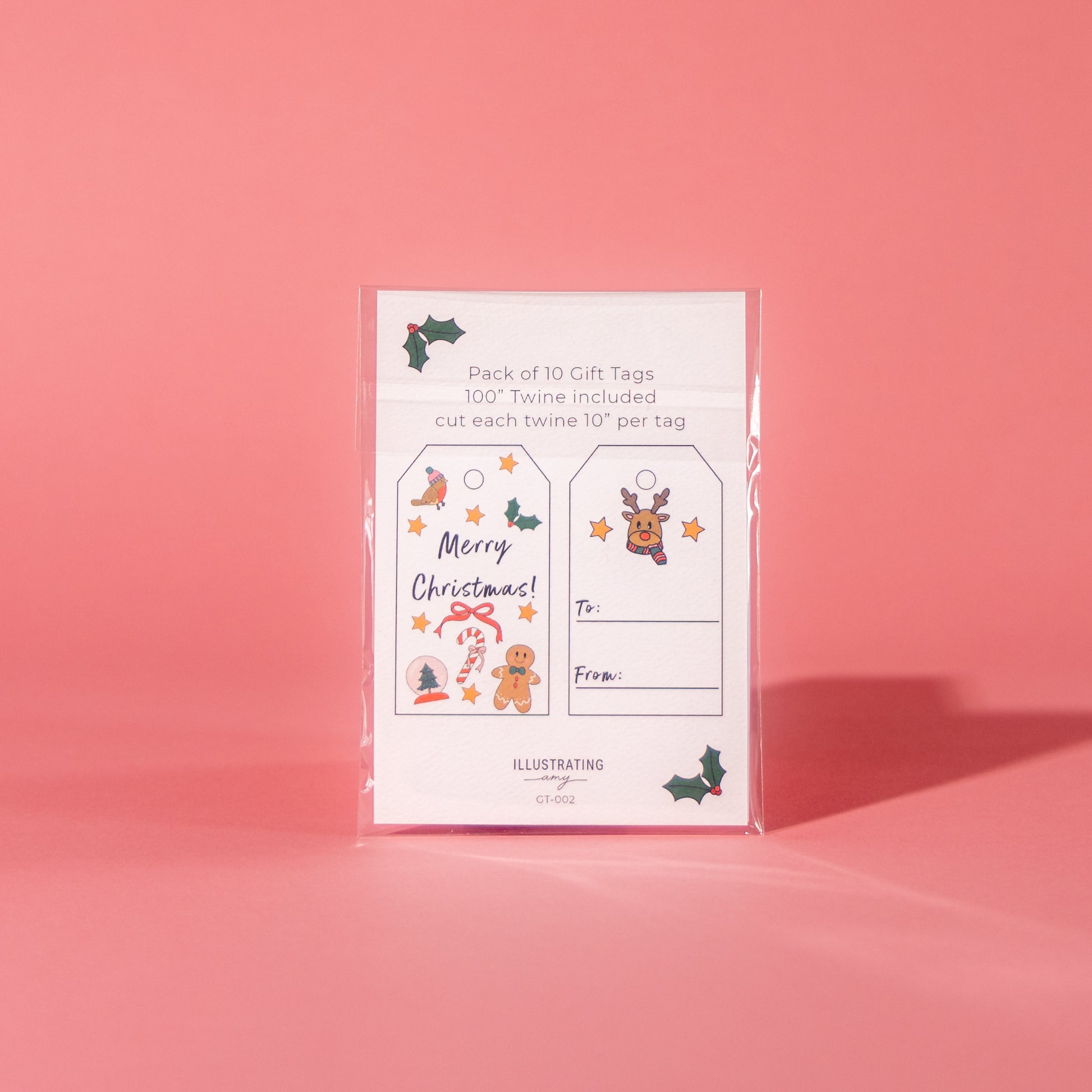 Make your holiday gifts stand out with our Whimsical Christmas Gift Tags. Featuring a delightful “Merry Christmas” message and a variety of charming Christmas icons on the front, these tags add a joyful and festive touch to your presents. The back includes space for a personalized "To" and "From," making each gift extra special. With 100 inches of included twine, you can easily attach these tags to all your holiday packages.