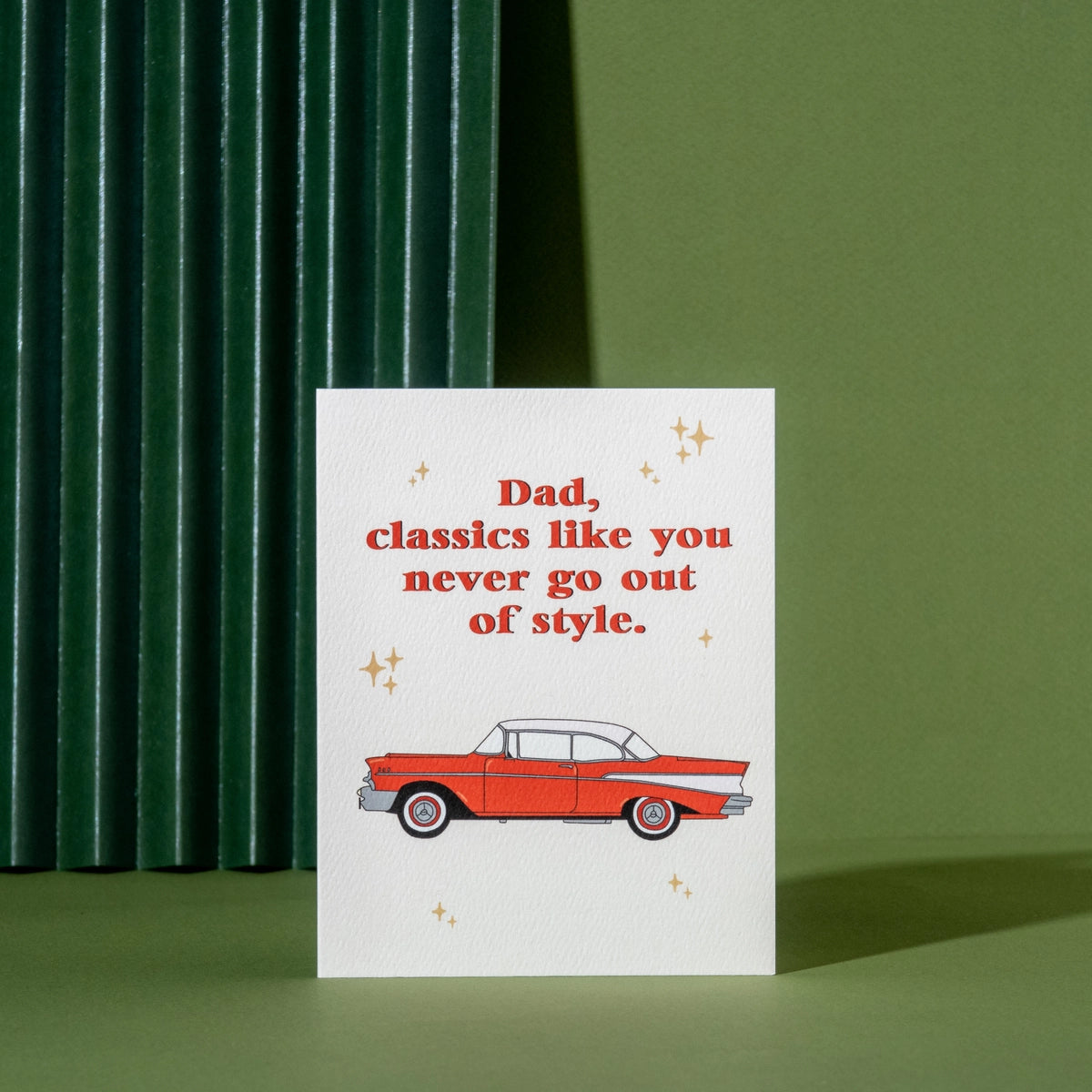 This card is for the dad who's always been cool and collected, just like his classic car. Thank you for being our steady guide, our source of inspiration, and our friend. Happy Father's Day to the dad who's a true classic, and who never goes out of style!