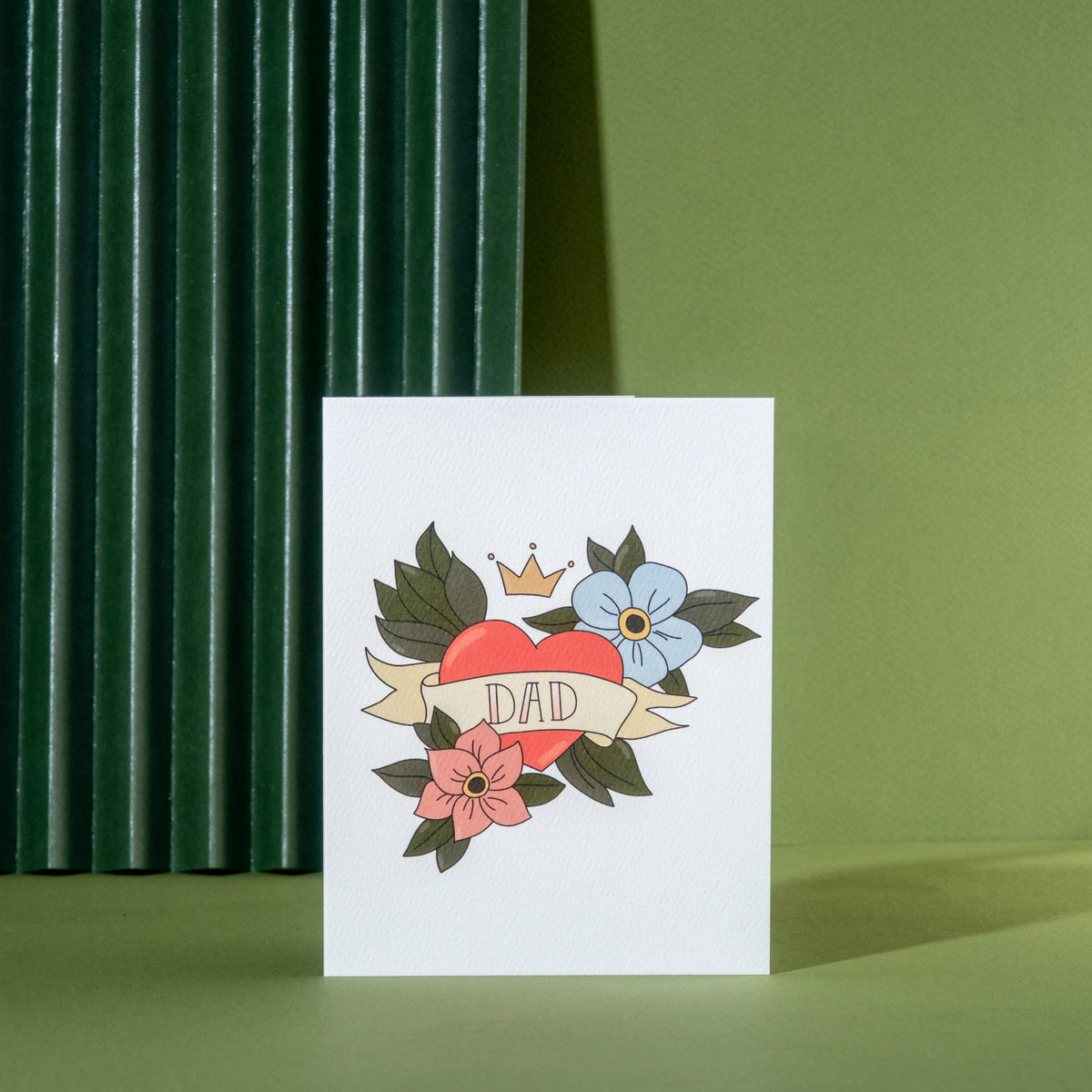 A father's love is forever, just like this classic heart tattoo. Wishing a Happy Father's Day to a dad who's tough on the outside, but has a heart of gold on the inside. Greeting card featuring illustration of a retro style heart tattoo.