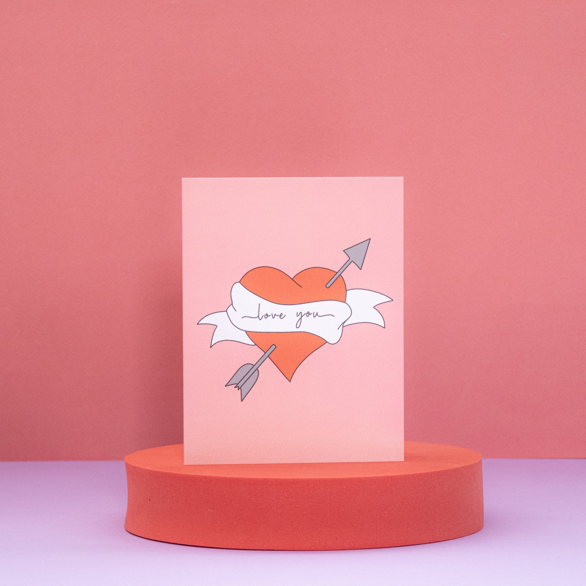 Love Never Goes Out of Style. This card exudes retro charm with its illustration of a tattoo-style love heart on a vibrant pink background. It's a timeless expression of love that can be shared and appreciated all year round. Whether it's Valentine's Day or any other occasion, this card is the perfect way to show someone just how much they mean to you.
