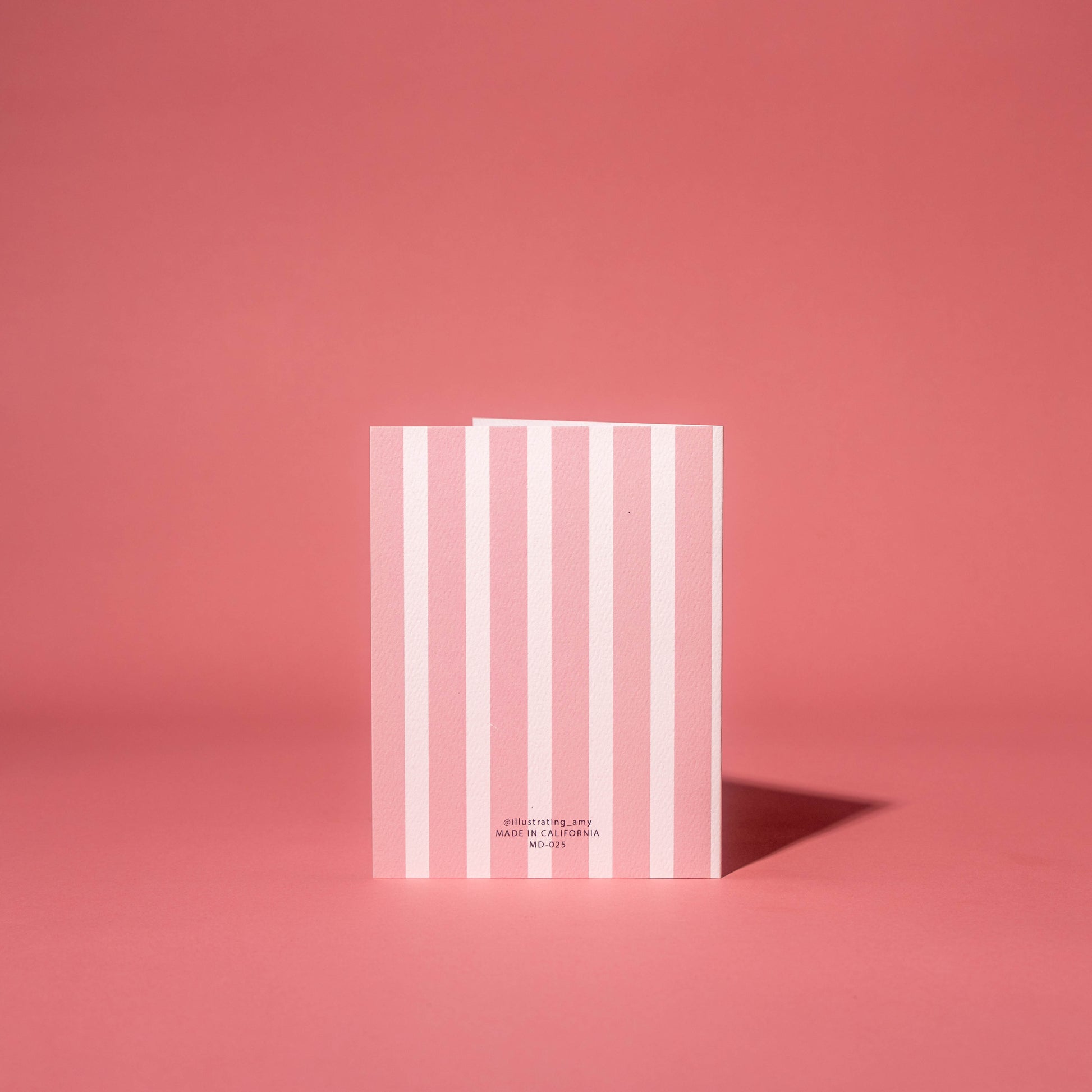Celebrate your mom with this elegant Mother's Day card, featuring bold pink stripes and a beautiful bouquet of flowers in a cream vase. The simple black text reads "Love you, mom!" This card is perfect for expressing your love and appreciation on Mother's Day or her birthday.