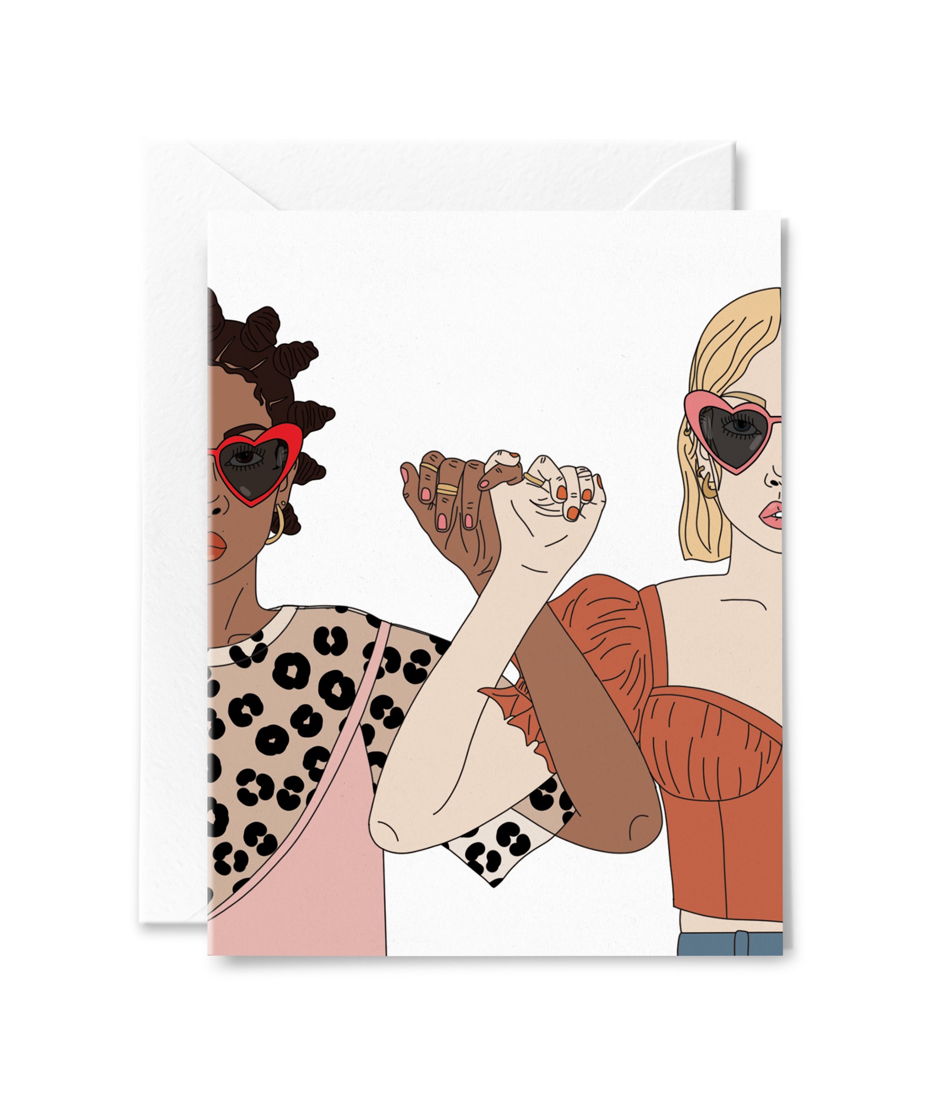 Celebrate the power of friendship with our Pinky Promising card. Featuring an endearing illustration of friends engaged in a pinky promise, this card is a heartwarming way to honor the special bond between friends and to remind them that you'll always be there for each other.