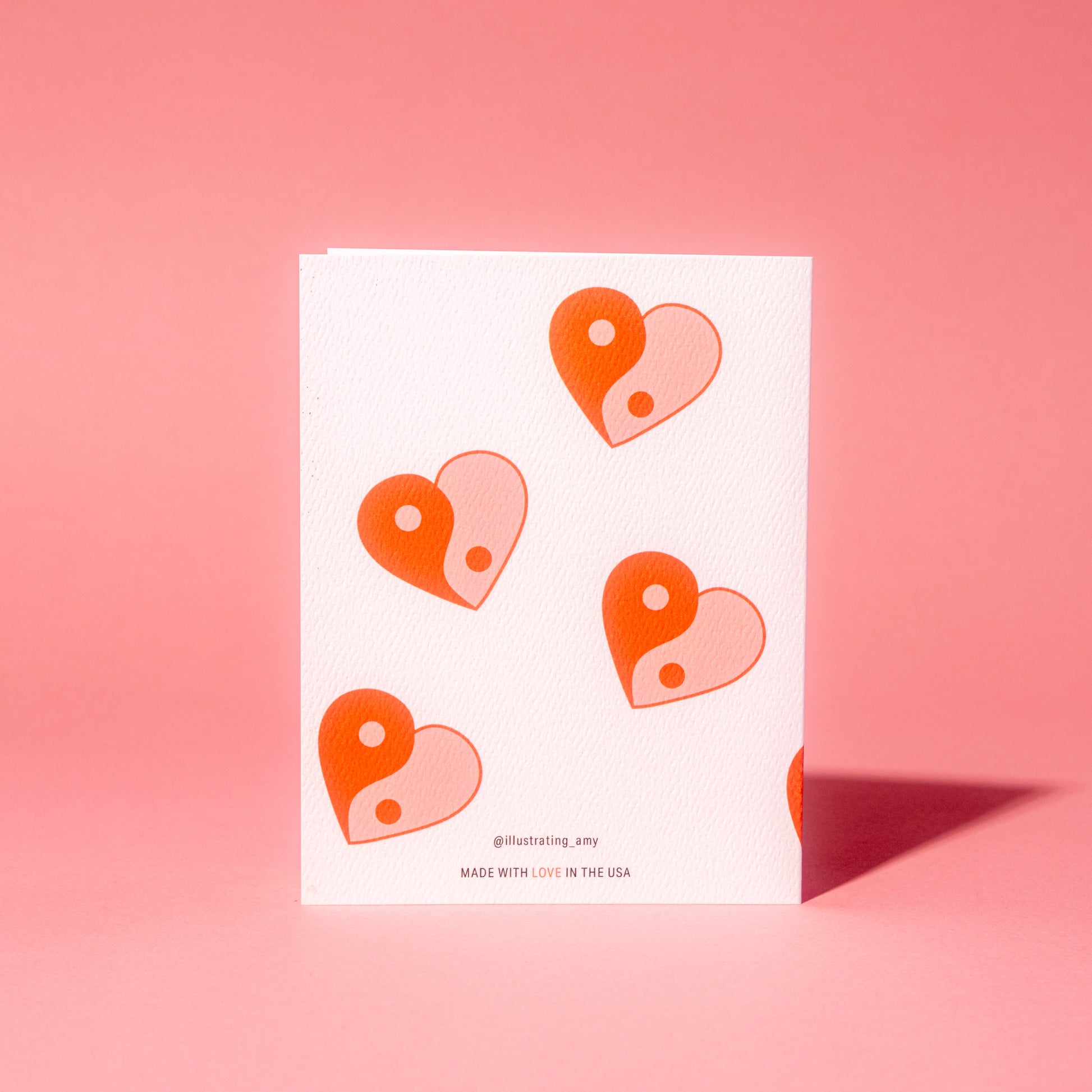Celebrate love in all its forms with our Heart-Shaped Yin & Yang card. Featuring beautifully intertwined heart-shaped Yin & Yang symbols, this card is a perfect choice to honor friendships, anniversaries, and all the special connections that bring balance and harmony into our lives.